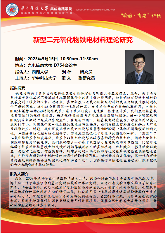 喻园•育芯讲坛第14期:新型二元氧化物铁电材料理论研究
