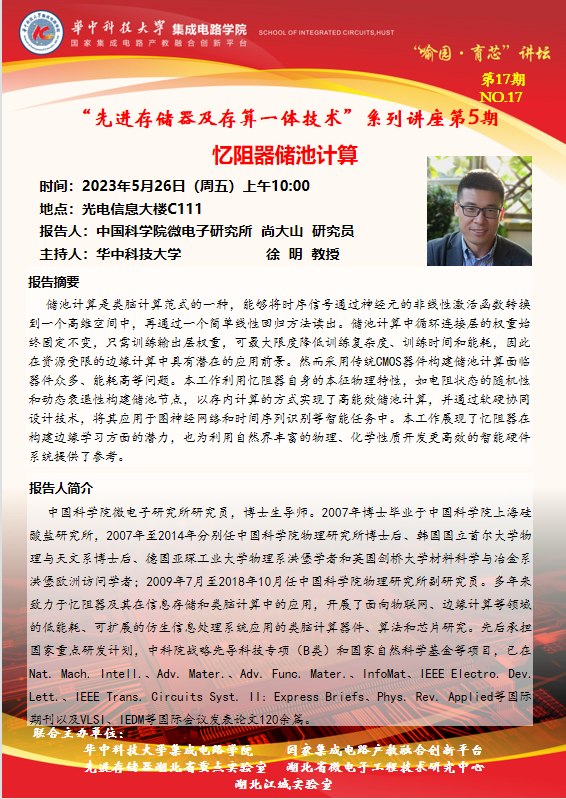喻园•育芯讲坛第17期—“先进存储器及存算一体技术”系列主题讲座第5期:忆阻器储池计算