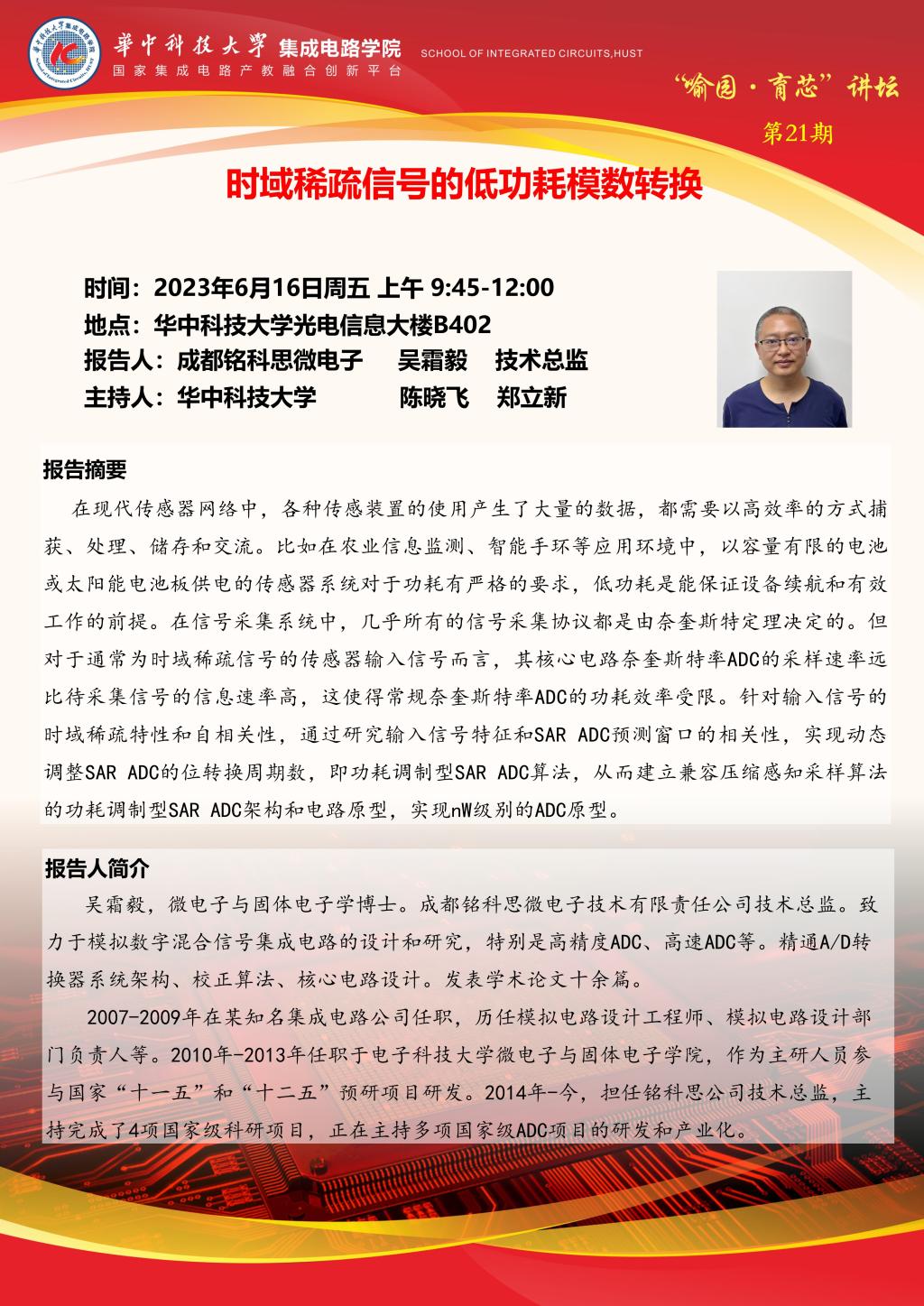 喻园•育芯讲坛第21期:时域稀疏信号的低功耗模数转换