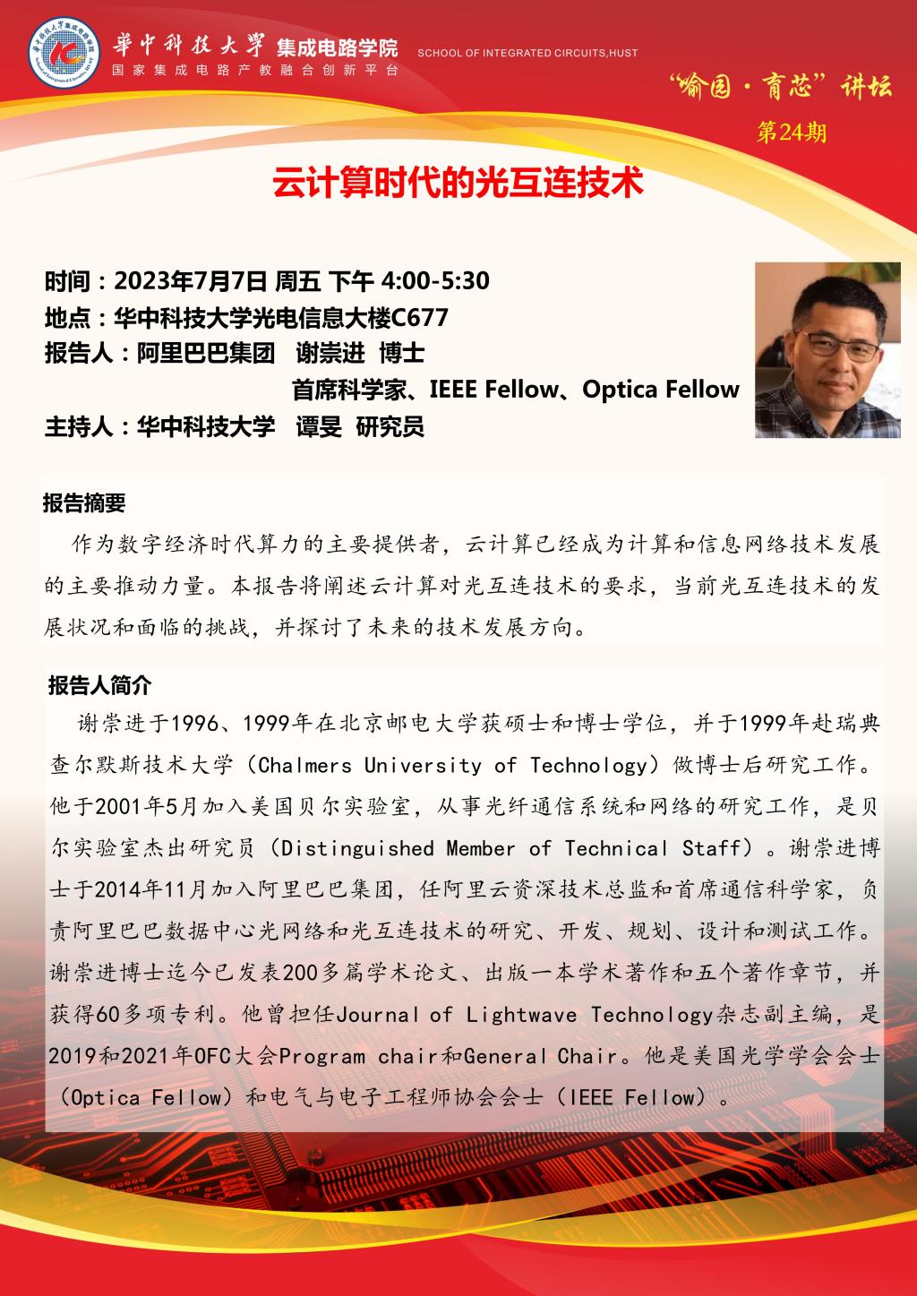 喻园•育芯讲坛第24期:云计算时代的光互连技术