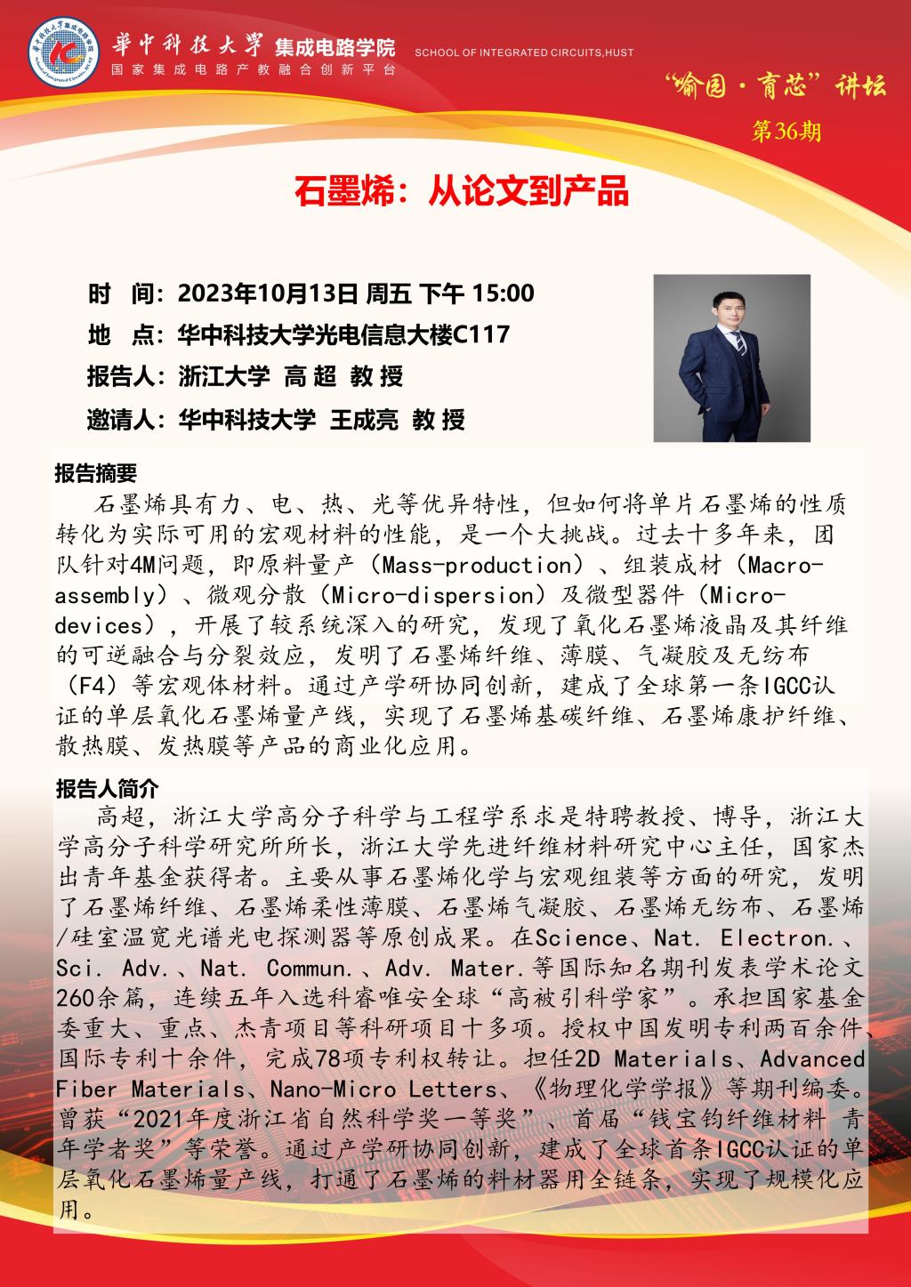 喻园•育芯讲坛第36期:石墨烯:从论文到产品