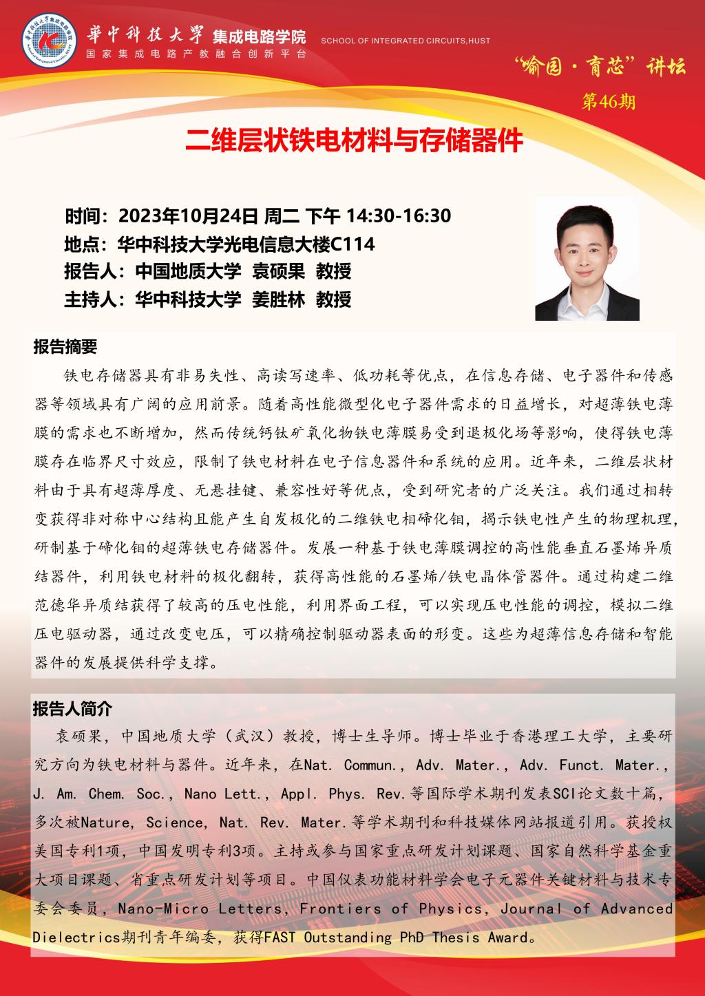 喻园•育芯讲坛第46期:二维层状铁电材料与存储器件