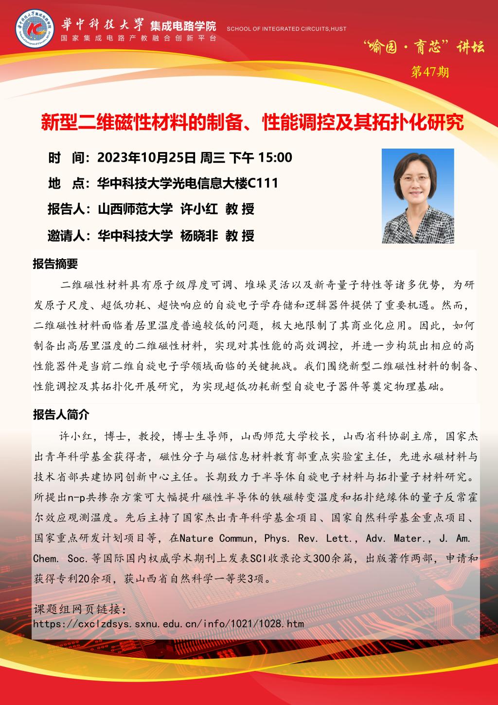 喻园•育芯讲坛第47期:新型二维磁性材料的制备、性能调控及其拓扑化研究