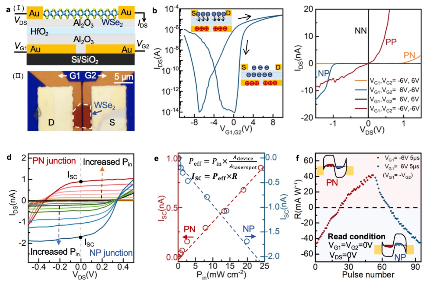 1:基于分裂栅WSe2晶体管的差分对,及其对光强变化的脉冲响应