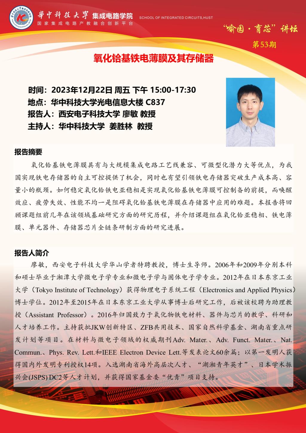 喻园•育芯讲坛第53期 :氧化铪基铁电薄膜及其存储器