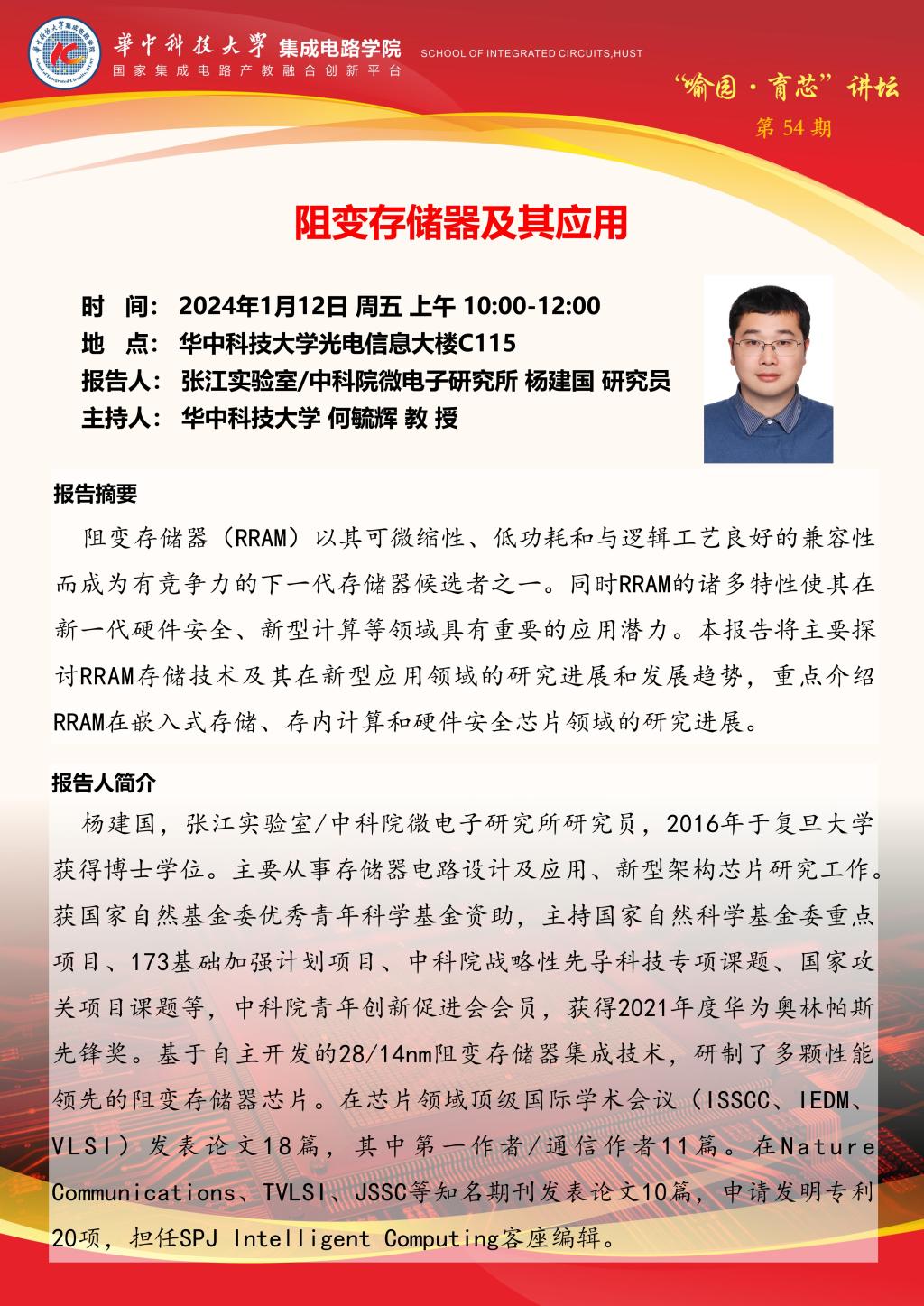 喻园•育芯讲坛第54期 :阻变存储器及其应用