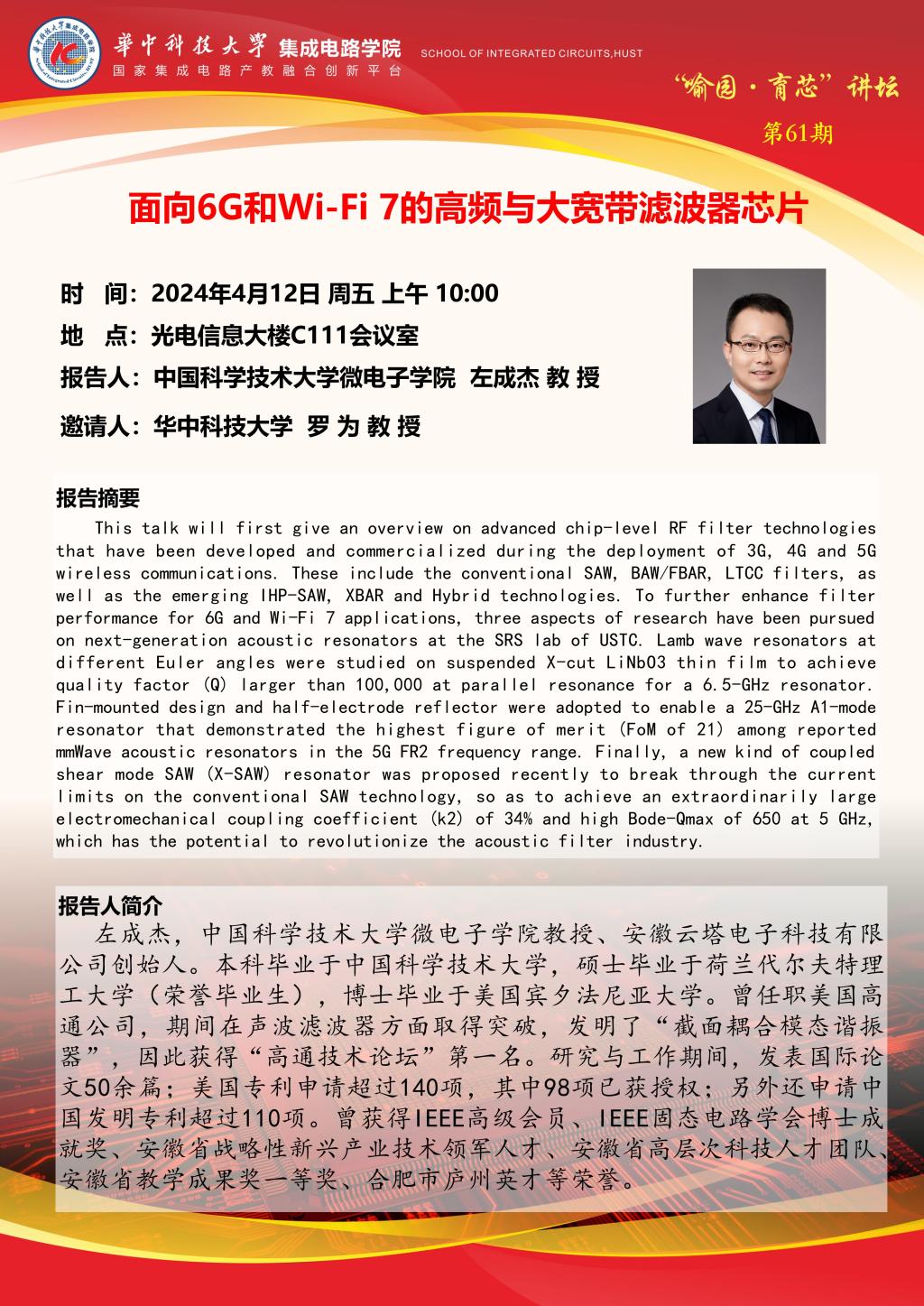 喻园•育芯讲坛第61期 :面向6G和Wi-Fi 7的高频与大宽带滤波器芯片