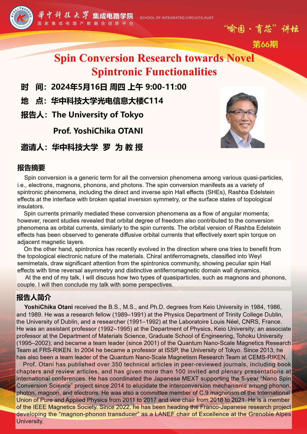 喻园•育芯讲坛第66期 :Spin Conversion Research towards Novel Spintronic Functionalities