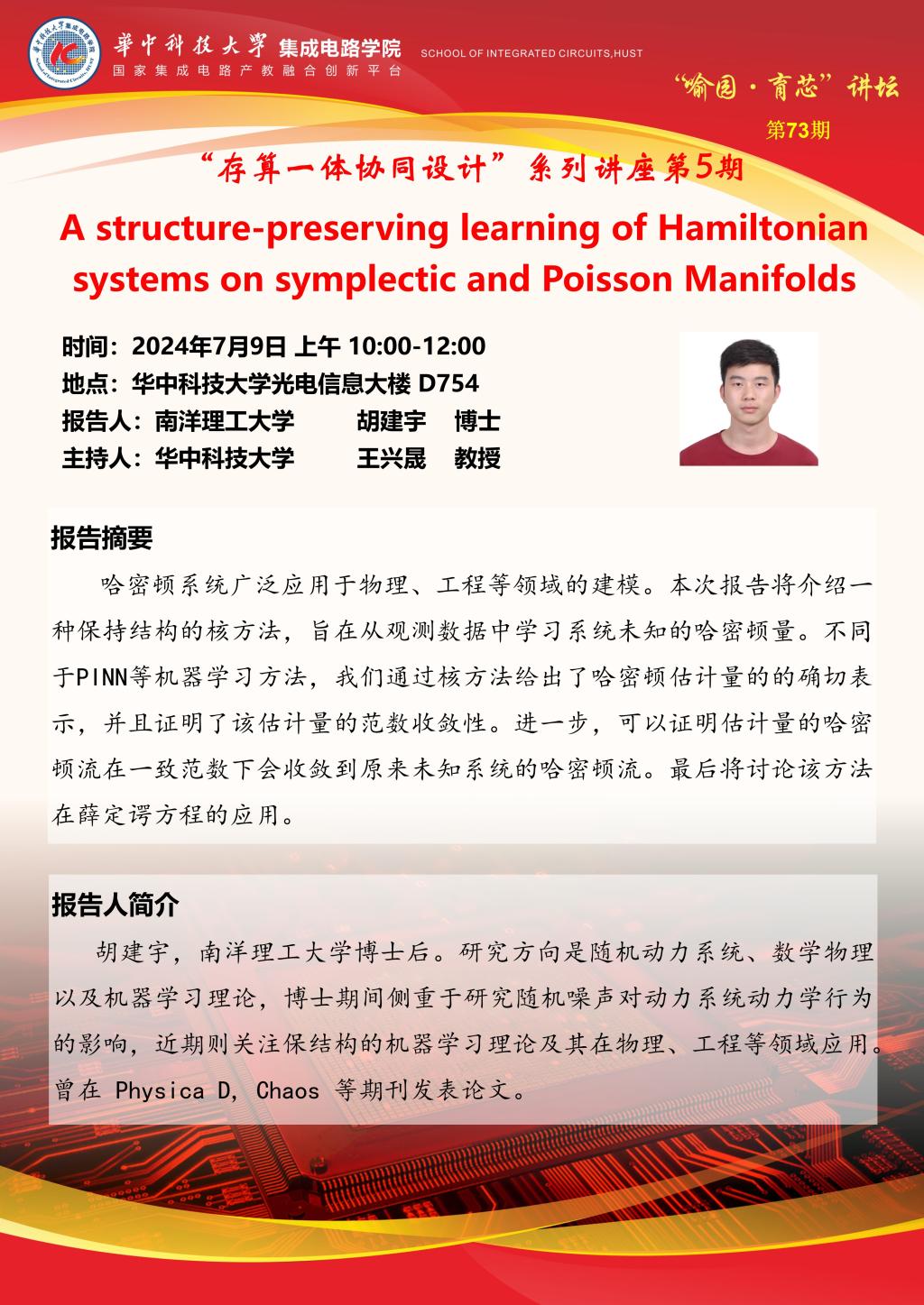 喻园•育芯讲坛第73期—“存算一体协同设计”系列讲座第5期:A structure-preserving learning of Hamiltonian systems on symplectic and Poisson Manifolds