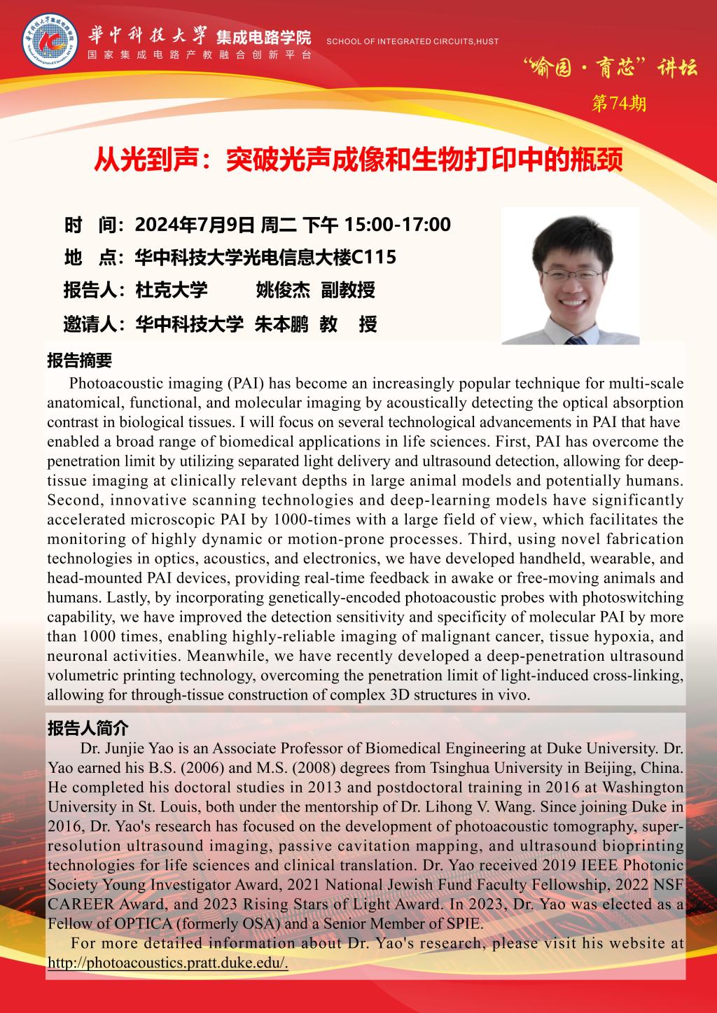 喻园•育芯讲坛第74期 :从光到声:突破光声成像和生物打印中的瓶颈