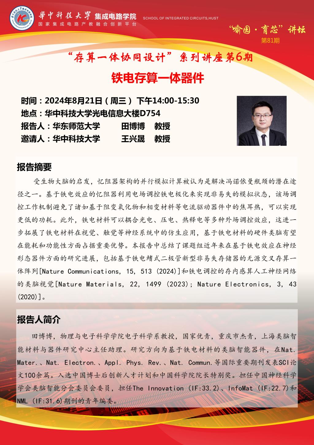 喻园•育芯讲坛第81期—“存算一体协同设计”系列讲座第6期:铁电存算一体器件
