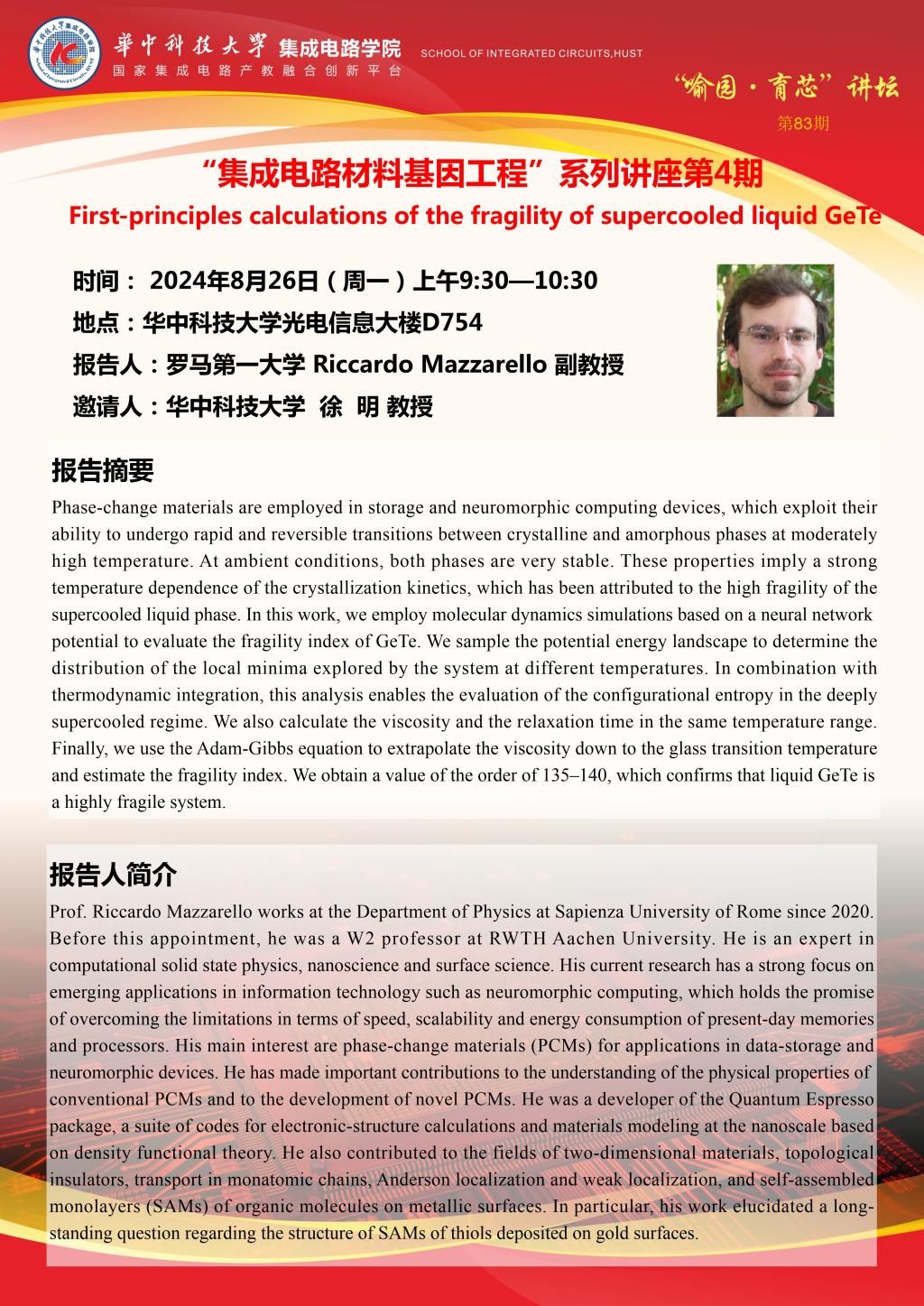 喻园•育芯讲坛第83期:First-principles calculations of the fragility of supercooled liquid GaTe