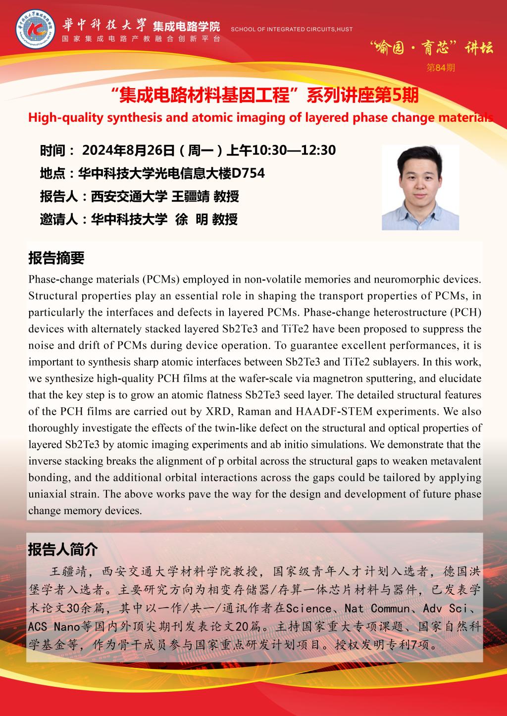 喻园•育芯讲坛第84期:High-quality synthesis and atomic imaging of layered
