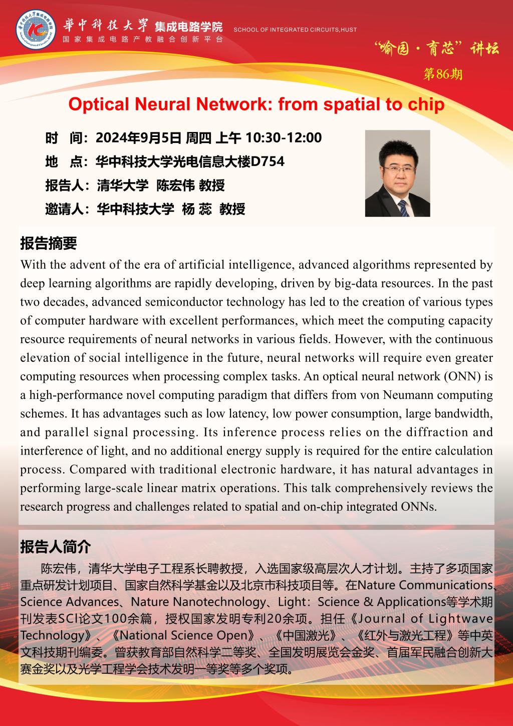 喻园•育芯讲坛第86期:Optical Neural Network: from spatial to chip