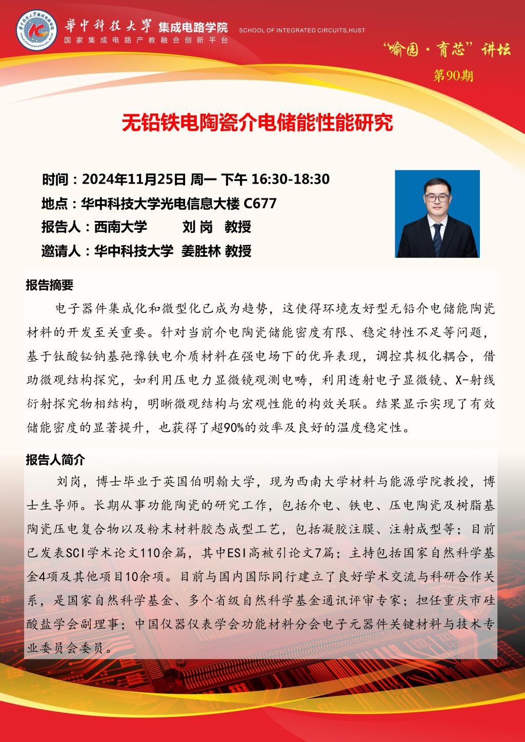 喻园•育芯讲坛第90期:无铅铁电陶瓷介电储能性能研究
