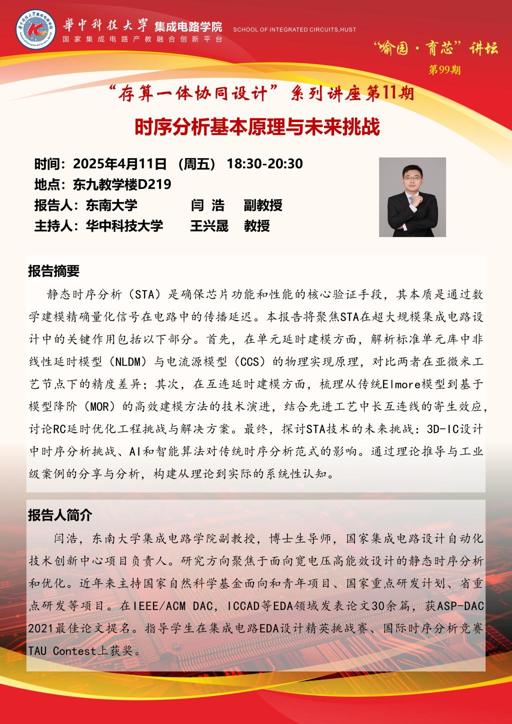 喻园•育芯讲坛第99期—“存算一体协同设计”系列讲座第11期:时序分析基本原理与未来挑战
