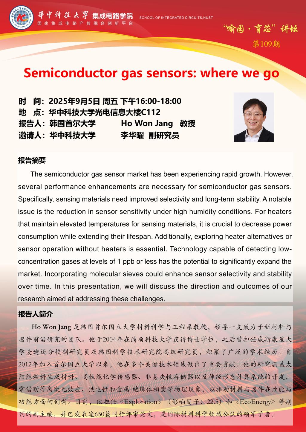 喻园•育芯讲坛第109期:Semiconductor gas sensors: where we go