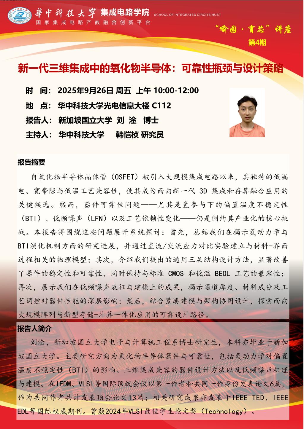 喻园•育芯讲座第4期:新一代三维集成中的氧化物半导体:可靠性瓶颈与设计策略