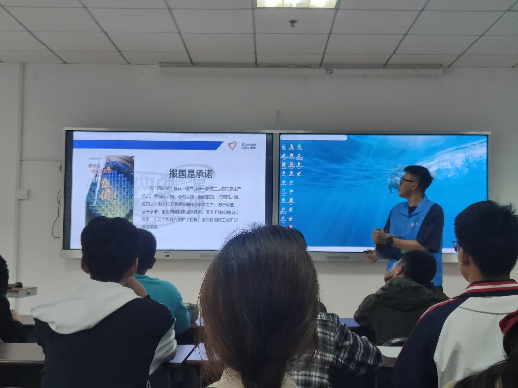 宣讲会上,主讲人以“从‘两弹一星’到科技自立自强”为主题,通过珍贵的历史影像资料,详细讲述了钱学森、邓稼先等科学家突破重重阻碍、为国奉献的感人事迹。“这些前辈们用青春和热血诠释了什么是真正的爱国主义。”主讲人在讲解中特别强调,“‘两弹一星’精神不仅是历史记忆,更是我们这代青年应该传承的精神财富。”