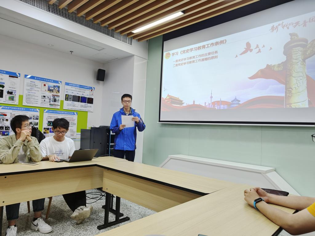 会议伊始,同学们齐唱团歌,并系统学习《党史学习教育工作条例》,班长韩乐尧开展了国家安全教育工作。