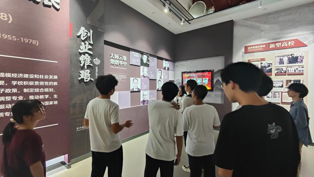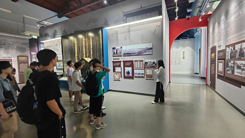 在讲解员的带领下,同学们缓步进入校史馆。首先引入眼帘的是华中大主校区的3D立体模型地图,大家纷纷围上前来,从另一个视角观察华中大,感叹华中大的魅力。穿行在校史馆的回廊中,在讲解员的解说下,同学们仿佛正在和华中大一同经历建校70年的风雨:初代校长为学校发展对校址选取的考量,同济医科大学在战争时期救死扶伤的医者精神,华中工学院在特殊时期顶住压力收留学者的包容,1970年起前瞻性地向综合型大学的发展,2000年重新组校的历史变革,在新时代与国际间的接轨,在疫情期间的为抗疫胜利的重要奉献……同学们全程紧跟着讲解员的脚步,生怕漏掉了华中大70年发展历史的任何一个细节。