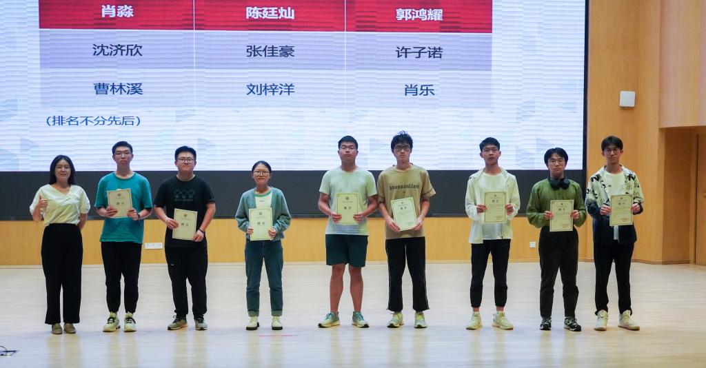 最后是芯火提高班朋辈导师聘书颁发环节。为推进年级学风建设,为有志于进一步提升自身学习能力的同学提供优质的学习资源和多样化的学业帮扶力量,学院在本科2022级设立“芯火”提高班,并招募朋辈导师为班内同学答疑解惑,讲解相关专业课知识点与习题。刘伊琳老师为录取的9位朋辈导师颁发聘书,合影留念,鼓励他们肩担大任,接续奋斗,为年级学风建设做出卓越贡献。