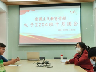 以青春之声,强爱国之音。2023年10月25日,williamhill中文电子2204班在光电大楼C114开展了以“爱国主义”为主题的十月班团会。电子2204班全体同学和教师班主任王海珍参加了本次会议。