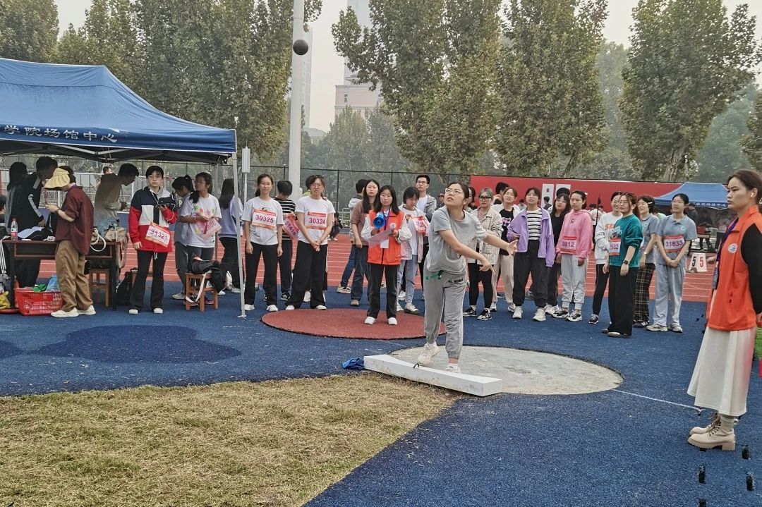 在实心球项目中,孙佳艺同学获得学研女甲第二名。她表示,实心球项目考验的是上肢力量、动作速度和出手角度。在紧张的学习压力之余,她仍积极备赛训练,并着重强化上肢及背部力量。在聊到参赛体验方面时她也感慨道:“虽然训练时间紧张,但能为学院争得荣誉我非常开心。”