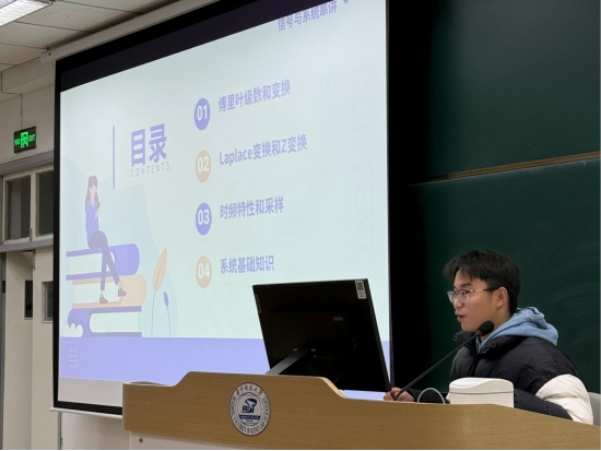 为进一步擦亮“学在华中大”的名片,推动党支部工作与学生学业发展相融合,帮助期末复习的同学更好地掌握核心知识点和学习技巧,12月12日晚,由集成2023级本科生党支部与学创中心携手举办的《信号与线性系统》期末考前串讲在东九教学楼B203教室拉开帷幕。由电子2302班的石庆杰同学担任本次串讲主讲人。