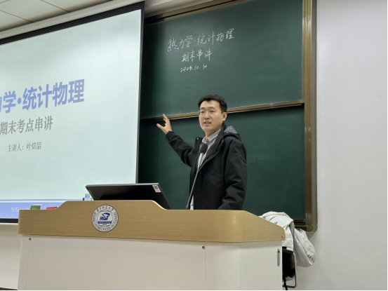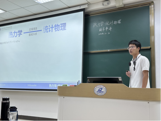 叶煊喆同学从整体上介绍了热统这门课程的特点,阐明热力学和统计物理间的联系,指出学习侧重点应在掌握物理性质和规律上,为同学们指明了复习的方向。