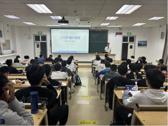 为擦亮“学在华中大”的品牌,涵养优良学风,帮助期末复习的同学更好地掌握核心知识点和学习技巧,10月30日晚,由williamhill中文2023级党支部与学创中心携手举办的《热力学与统计物理》期末考前串讲在东九楼B203教室正式拉开帷幕。集卓2301班叶煊喆同学担任本次串讲的“小老师”,集成2023级本科生党支部书记、本科2023级辅导员刘文乐在发言中表示,期待同学们能够从这次串讲中真正查漏补缺、学到知识,并预祝同学顺利通过考试。