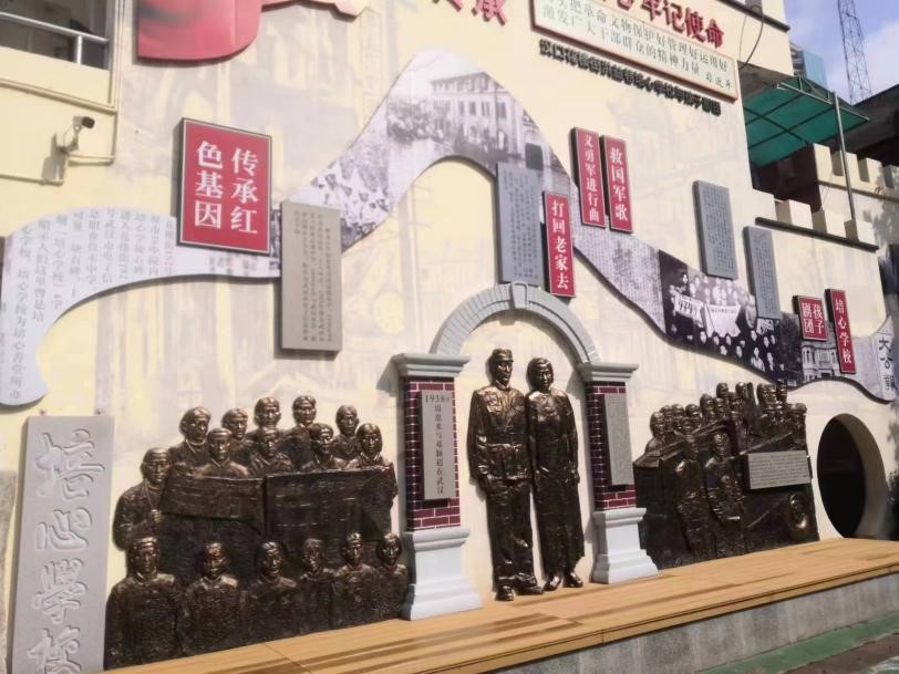 走出展厅,面前是孩子剧团纪念墙。古铜色的浮雕、黑白间的图片、一行行的墨迹,继续向人们生动展示了孩子剧团当年在抗日战争中用青春赴汤蹈火、舍生忘死的革命事迹,他们用最纯真的心演绎着民族精神,用最坚定的意志见证着中华誓言。同学们深受感动,在留言簿上写下感想,纷纷表示要学习孩子剧团无私奉献的高尚品质,发扬艰苦奋斗的作风,争当新时代的佼佼者,并将这份感动转化为行动,以后在各自的岗位上倾注热忱,努力成为祖国和人民可以信赖的栋梁之才。