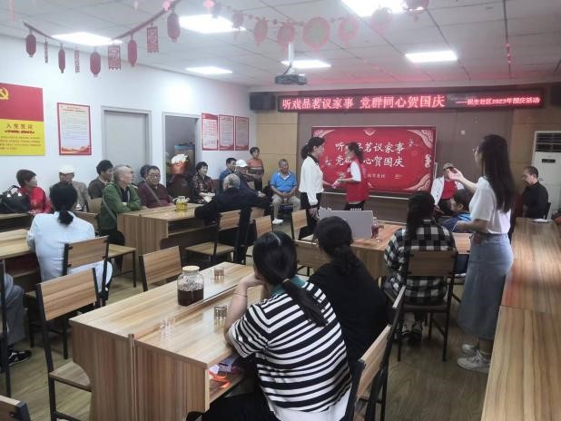 中秋是家人团圆的日子,国庆是祖国“团圆”之日。1949年10月1日,中华人民共和国的成立,让国家结束了半封建半殖民地社会,进入新的时代。如今的祖国,在党的坚定领导下正在向中国梦奋勇前行。一杯香茗,一件往事,在座的老党员向志愿者们讲述了过去岁月的故事,讲述了祖国如何从积贫积弱走向繁荣富强。他们是时代的经历者,而青年是时代的传承者。时代重任交于青年肩上,我辈当在祖国的伟大事业中贡献青春力量,续写祖国新篇章。