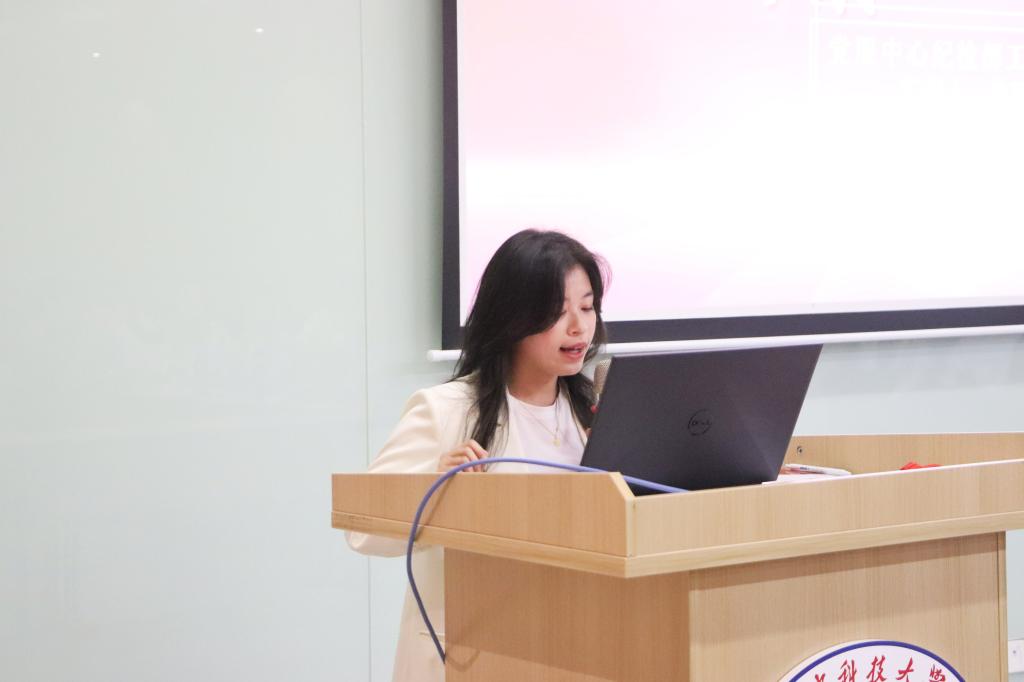 会议在庄严的国歌声中拉开序幕。各部门负责人对过去一年的工作进行了全面深入的总结。窦英杰同志以“当好桥梁,做好服务”为题,讲述了第一届党建中心办公室的工作开展情况,鼓励新一届学生骨干继续不忘初心,砥砺前行;何雯同志围绕培训班办班、每月理论学习资料汇编以及“红色读书室”品牌建设等内容谈了自己对学习培训部工作的思考;林亚同志讲述了纪检部在开展基层党支部监会、协助党费交纳、规范月报填写报送等工作中的成长与收获;潘浏飞同志分享了自己在协助系统维护、开展材料审核等工作中的锻炼成长经历;李以宁同志回顾了一年来的宣传工作,对下一步工作提出了经验建议。