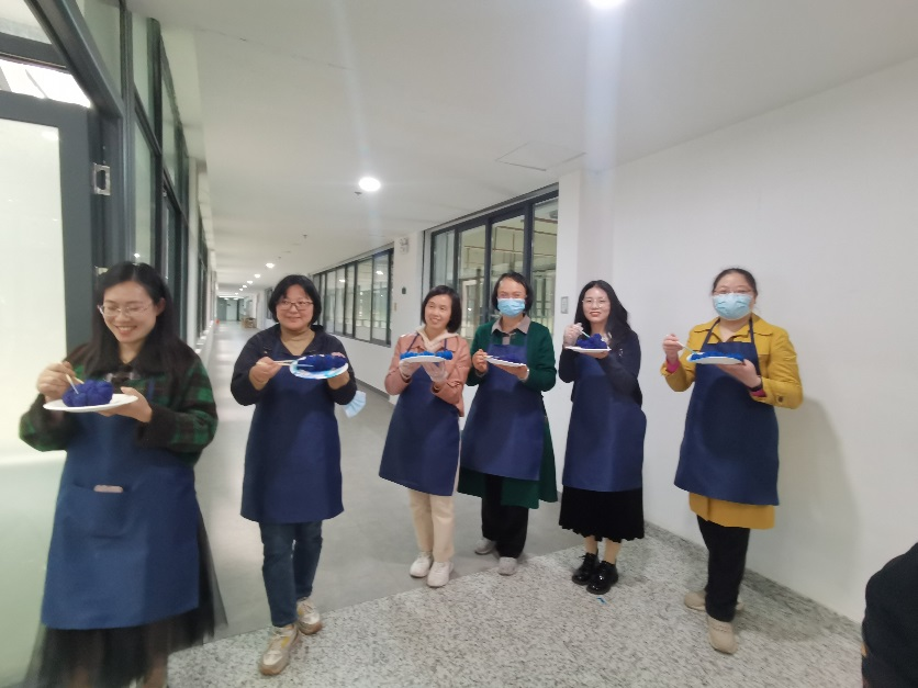 扎染活动结束之后,紧接着举行了教职工迎春教职工集体生日会,参加完扎染活动的女教职工马上转入到甜蜜的生日会之后,女老师表示感觉女教职工在3月8日快乐了一天,感觉太幸福了。此外还有20余位男教职工参加了迎春生日会。