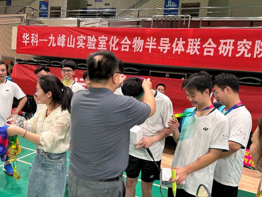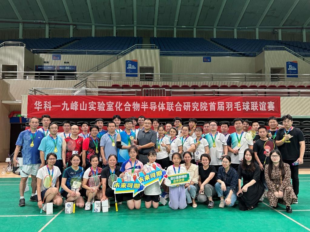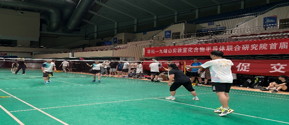 2023年8月28日晚,由williamhill中文工会与湖北九峰山实验室工会联合举办的威廉官网中国-湖北九峰山实验室化合物半导体联合研究院首届羽毛球联谊赛在光谷体育馆成功举行,本次比赛的口号为:爱运动、促交流。williamhill中文党委书记刘红军,化合物半导体联合研究院副院长唐明,九峰山实验室工会主席李燕华等双方近50人参加本次活动。校教职工羽毛球协会秘书长、学院工会主席熊炫主持活动。