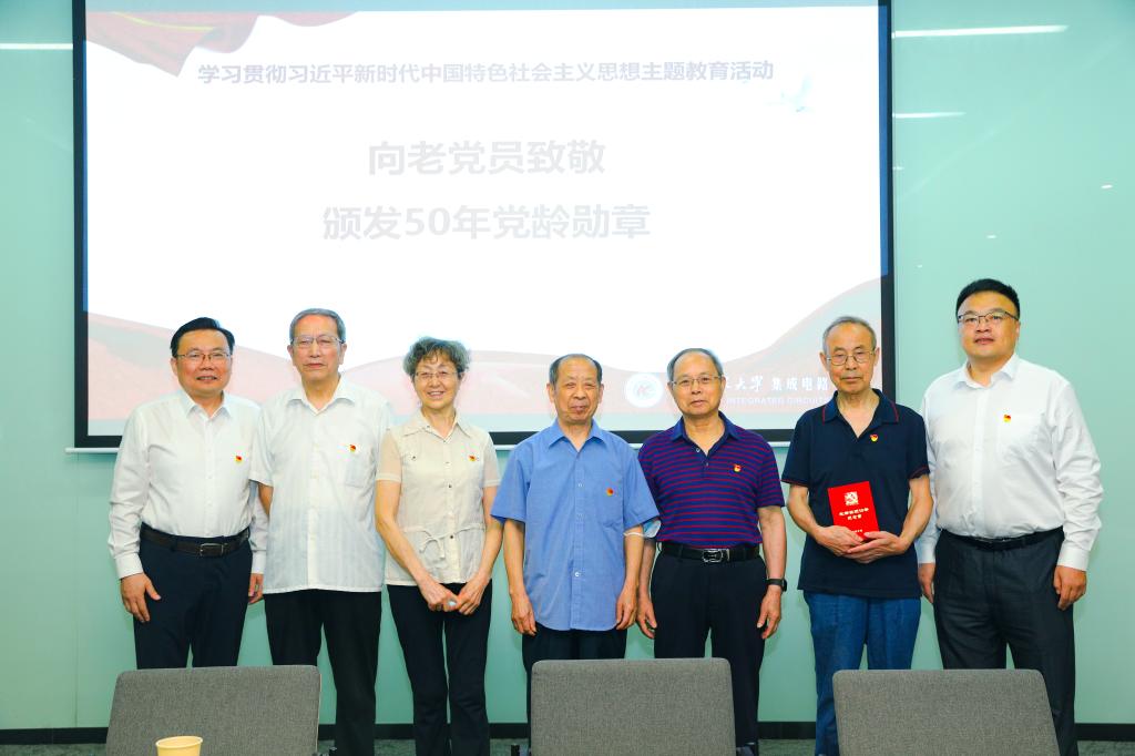 会上,集成学院缪向水院长、刘红军书记向有50年党龄的党员颁发纪念徽章,向老党员致以崇高的敬意,感谢他们为党和人民事业不懈奋斗的精神和贡献。