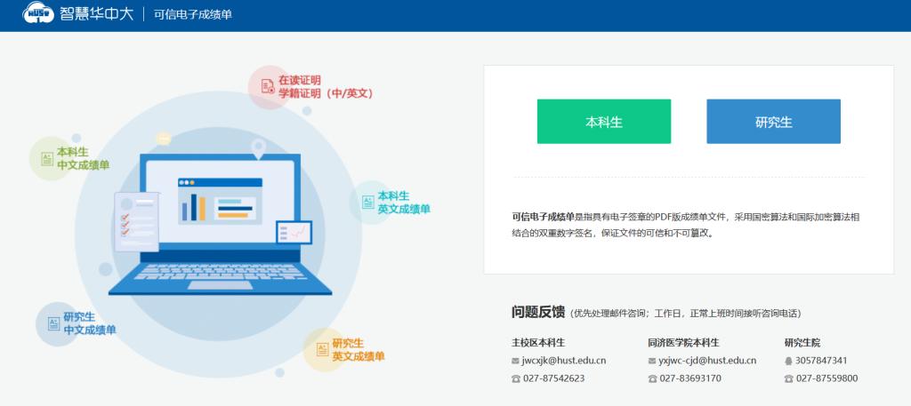 在读研究生可通过可信电子成绩单系统获取电子版成绩单、学籍证明和在读证明等材料,电子版证明材料可自行打印,并可登录“学信网”验证。毕业生目前暂未开通提供电子版成绩单及各类证明的服务。