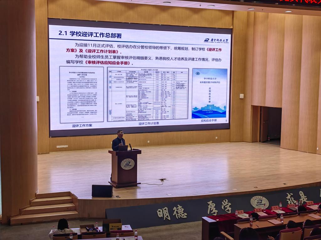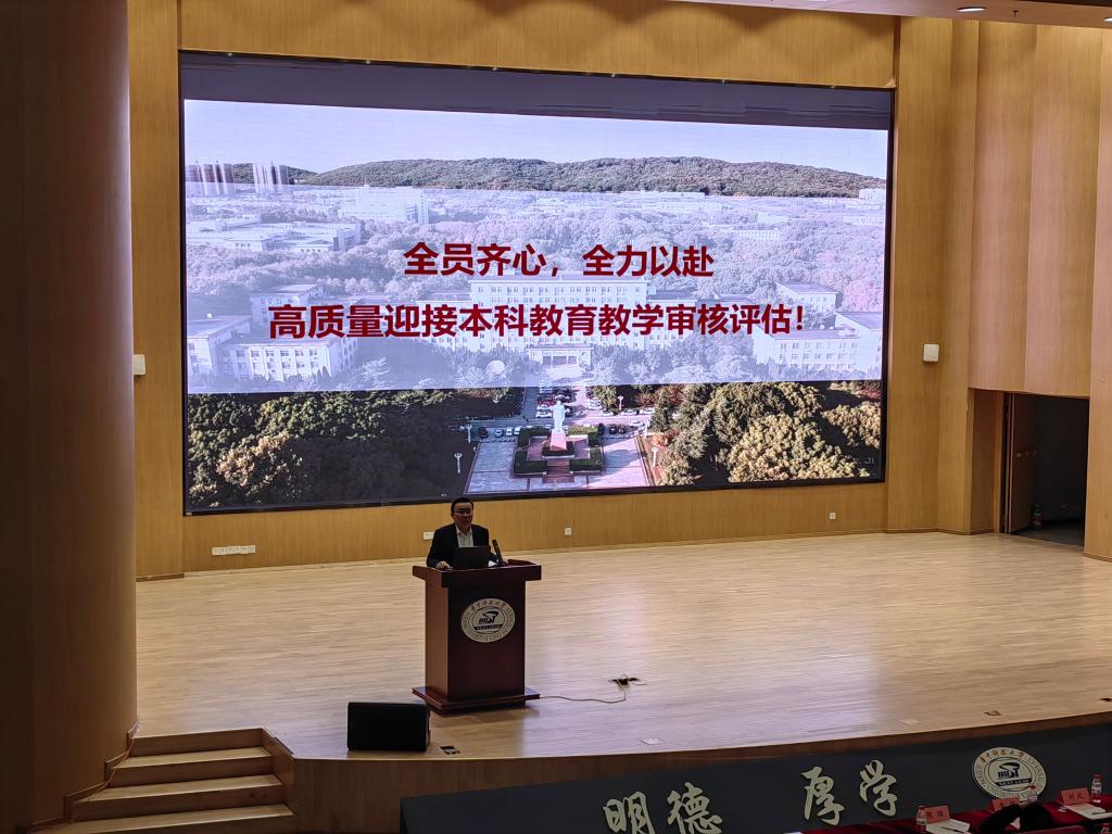 院长缪向水就本科教育教学评估工作作动员讲话。他强调,全体师生要统一思想,全力以赴,营造良好氛围,展现学院风采和实力,以饱满的精神状态迎接本科教育教学评估工作。他指出,本科教育教学审核评估不仅是对学院教学质量的体检,更是对学校学院本科教学质量的正向激励,各专业和教学部门要紧密配合,全面支持迎检工作,细化目标,查漏补缺,做到高质量迎检。