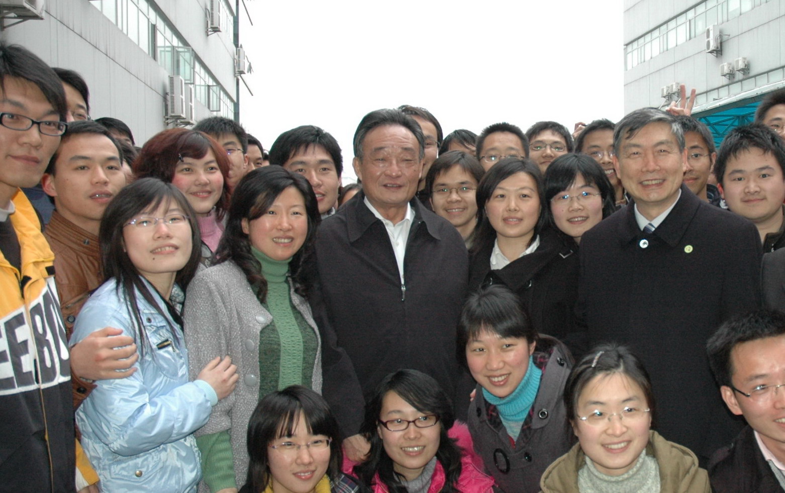 2009年4月,时任中共中央政治局常委、全国人大委员长吴邦国与我院师生合影